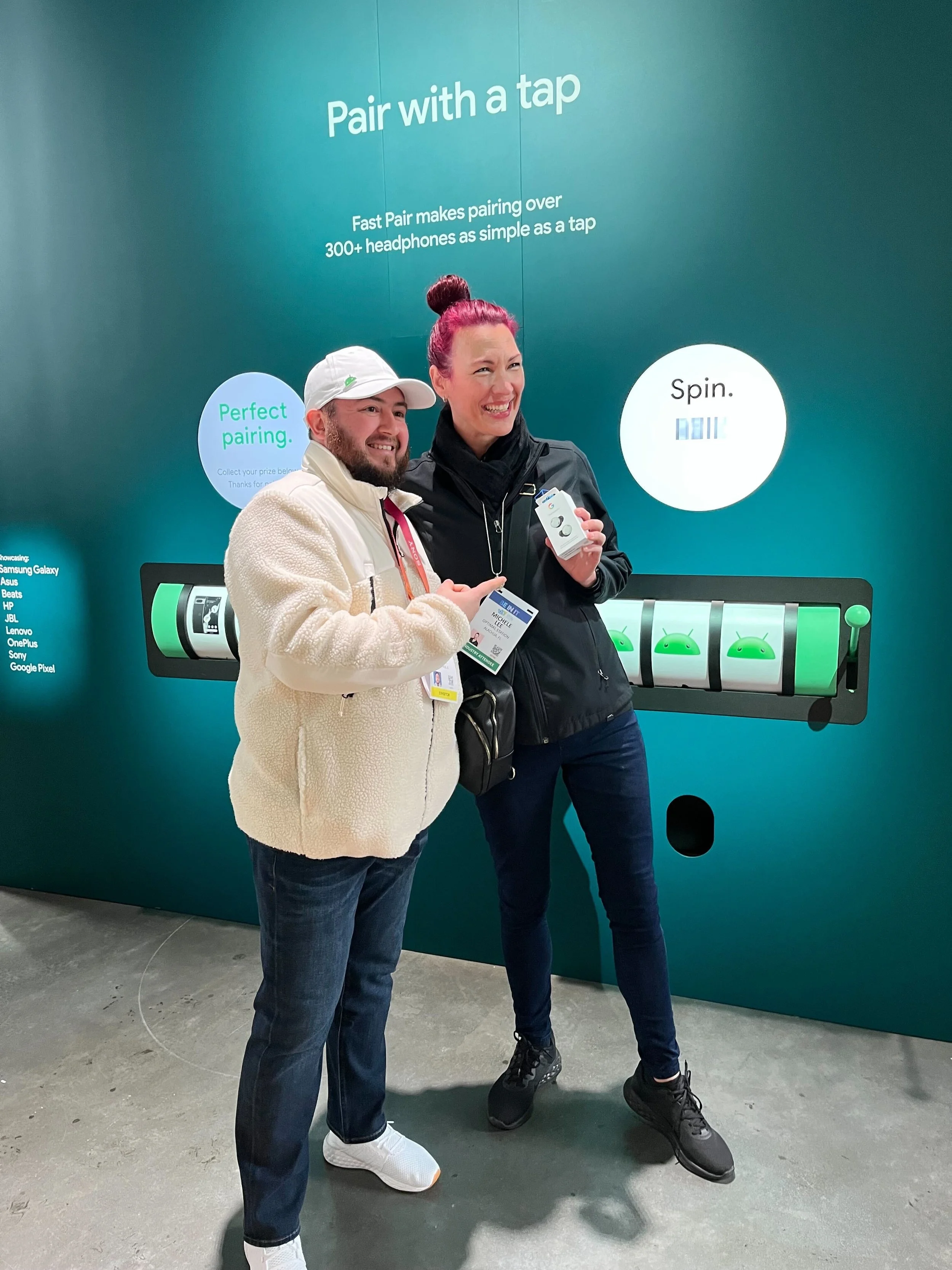 Once a day (remotely triggered) all three reels align on the Android head symbol, unlocking the grand prize.